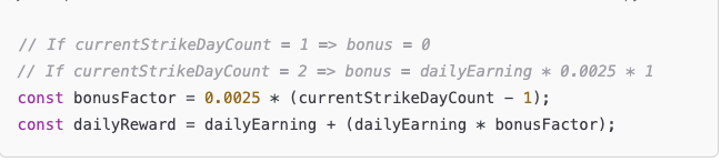 dailyEarning is a value attached to the NFT metadata and is determined by the Kanpai rarity model. This value reflects the NFT's rarity and other metrics and is fetched from an internal source.